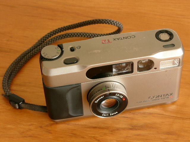 Accessories include original leather bag, and padded nylon bag ideal for carrying in field. Sold Contax T2